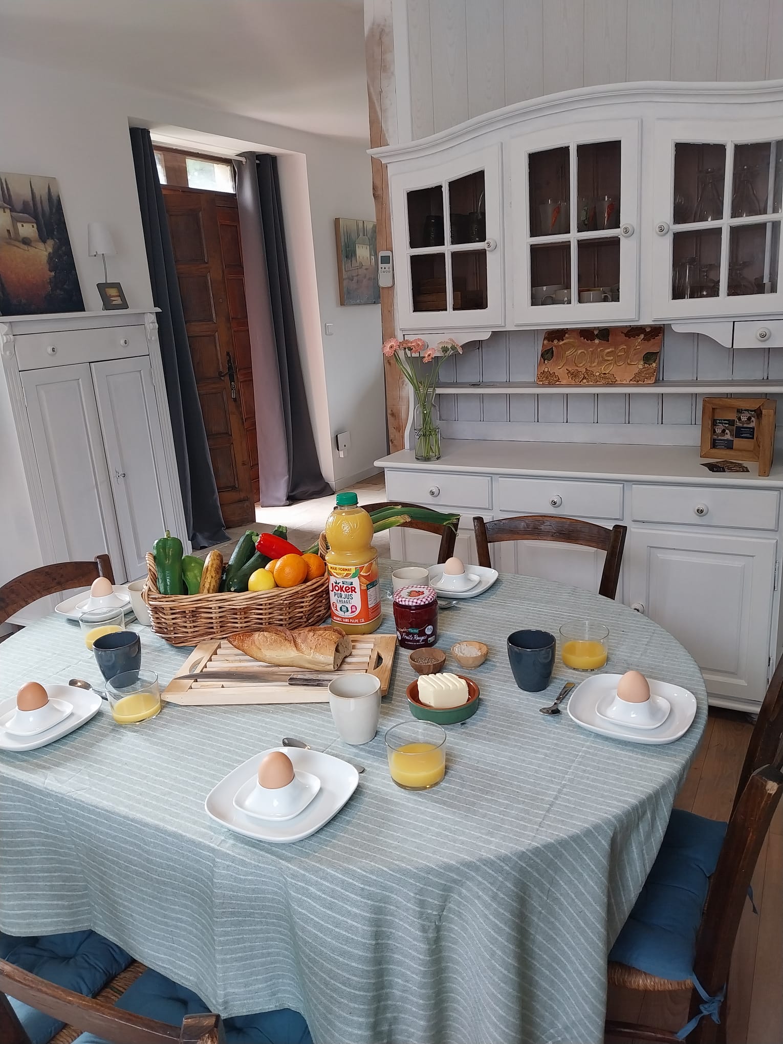 De Gîte is geschikt voor een familie van 6 personen. Het bevat 3 slaapkamers en 3 badkamers, keuken en living